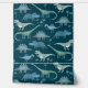 Fun Dinosaurier auf einem dunklen, aquamarinen grünen Hintergrund. Tyrannosaurus Rex, Triceratops, Diplodocus, Stegasaur und Spinosaurier. Ideal für ein Kinderzimmer, ein Zimmer oder ein Spielzimmer. Originelle Kunst von Nic Squirrell.