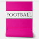 Dieses sportliche Design zeichnet sich durch modernen FOOTBALL-Text aus, der sich in einem breiten, weißen Mittelstreifen konzentriert, der mit schlanken schwarzen Pinstreifen vor hellem rosa Hintergrund hervorgehoben wurde. Die Farben und Texte in diesem Design können personalisiert sein.