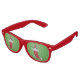 Diese Retro-Party-Brille hat einen lustigen Gnome mit spitzen Hut in einem roten Weihnachtsfest-Strumpf mit Bonbons auf einem grünen wirbelnden Hintergrund.