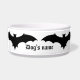 Niedliche Halloween-Silhouetten umgeben eine Hundefutterschale, die Sie mit dem Namen Ihres Hundes personalisieren können.