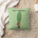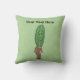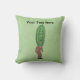 Dieses Kissen hat einen lustigen Mann in einem braunen Anzug mit einem großen grünen Pickle-Kopf, der ein schockiertes Gesicht auf einem hellgrünen Hintergrund hat. Passen Sie Ihren Text mit der Vorlage auf der Vorder- und Rückseite an.