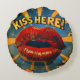 Fun Retro Pop Art 'Kiss Here' Rundes Kissen