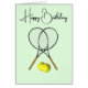 Two tennis rackets and tennis balls, Happy Birthday customize. You can also customize the inside text that now reads May all your opponents serve up love on your birthday. This sentiment offers a playful and positive spin on the competitive nature of tennis, suggesting that on a birthday, even opponents can share in the joy and good spirit of the occasion.