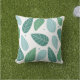 Ein helles und dekoratives Kissen mit blauen und grünen Blätter. In meinem Geschäft gibt es eine große Auswahl an weiteren Kissen und Produkten.