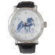 Die Uhr "Saddlebred Five Gait Elegant Blue Horse Design" ist eine atemberaubende Hommage an die Anmut und Schönheit des amerikanischen Saddlebred. Mit seinen zarten blauen Tönen und Blumenakzenten erweckt diese Uhr die Eleganz des fünfköpfigen Pferdes und ist somit ein perfektes Accessoire für jeden Pferdeliebhaber. Die Silhouette-Abbildung des Saddlebred in Bewegung ruft ein Gefühl des Stolzes und der Bewunderung für diese majestätischen Kreaturen hervor, während das raffinierte Design eine Touch der Eleganz hinzufügt. Es ist eine zeitlose Art, die Verbindung zwischen Reiter und Pferd zu feiern.