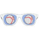 Diese lustige Brille hat einen weißen Baseball auf einem hellblauen Hintergrund. Ideal für Baseballfans!