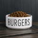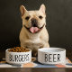 Diese minimalistische Hundeschüssel enthält das Wort "Burger" in fett schwarzem Text auf einer weißen Keramik. Es ist für Hundeliebhaber konzipiert und verbindet Stil und Spaß in einem eleganten, funktionalen Teil. Ideal für Hunde mit Feinschmecker und Haustiereltern, die trendige, schlichte Accessoires Liebe geben. Eine passende Wasserschale mit "Bier"-Text steht separat zur Vervollständigung des Aussehens zur Verfügung.
