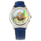 Kinderuhr aus Edelstahl mit blauem Lederarmband