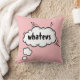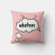 Das sonnige Kissen vor dem Kissen ist eine Denkblase für Comicen; Design wie gezeigt sagt "was", aber anpassen mit jedem Text, den Sie möchten. Die Kissenrückseite ist mit großen schwarzen Polka-Punkten verstreut. Das hier gezeigte Kissen ist blassrosa, kann aber beliebig farbig sein. Wählen Sie CUSTOMIZE und ändern Sie die Hintergrundfarbe, um Ihren Geschmack Anzug. Stellen Sie sicher, dass Sie die Farben sowohl vor als auch hinter dem Kissen ändern oder koordinieren.