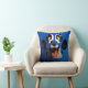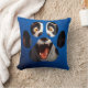 Funny Dog Paw Gesicht Kissen. Ein niedliches Hundegesicht in Form einer Hundekuh. Fotografie eines lustigen Pelzhundes-Gesichts auf blauem Hintergrund, das man in der Zimmerdekoration ändern kann. Einzigartiges und auffälliges Hundegesicht, das Sie zum Lächeln bringt. Erstellen und personalisieren Sie, indem Sie Text hinzufügen, die Bildgröße ändern und den Stil des Shirts für jedes Alter ändern. Einzigartige Geschenkidee für lustige Hundeliebhaber.