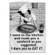 The next time any chauvinist / sexist man says the same, predictable "go to the kitchen and make me a sammich", point to the witty comeback on this greeting card. It shows a vintage woman with a proud smile on face and a giant sandwich in front of her, alongside a bottle of poison. The text reads, "I made you a sandwich as you suggested. "I dare you to eat it." Beursache whoever controls your food supply, controls your fate. To add your own message inside, klick "Customize It."