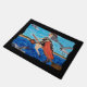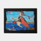 Das ist ein originelles volkstümliches Gemälde einer lustigen Hexe, die auf dem Weg zu ihrem Strandurlaub über den Ozean fliegt. Sie hat einen schwarzen Anzug mit einem Kap mit Sternen und ihre schwarze Katze hängt auf ihrem Besen für ihr liebes Leben. Sie fliegt am Strand mit den Möwen über das Meer. Sehen Sie in meinem Shop Art by MAR für andere Produkte mit diesem Design.