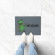 Funny Green T-rex Dinosaur Playing Flute Fußmatte