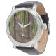 Uhr, Vintage Männeruhr mit schwarzem Lederarmband