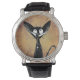 Katzen brauchen eigentlich keine Armbanduhren, aber vielleicht gefällt Ihnen diese Katze. Entfernen Sie den Vintag strukturierten Hintergrund, wenn Sie möchten, und wählen Sie eine beliebige Hintergrundfarbe aus. Viel lustigere und niedliche Katzengeschenkideen, Katzenmode und Katzenstil auf Paul Sticklands StrangeStore auf Zazzle.