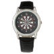 Diese Uhr wurde als Neuheit mit einem Dartboard-Hintergrund mit Uhrenmarkierungen in männlicher Ausführung für Sport- oder Dartbegeisterte geschaffen. Eine einfache Schöpfung, die ein Lächeln auf das Gesicht von jedem wert ist, der sie sieht.
