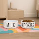 Diese minimalistische Hundeschüssel für Wasser enthält das Wort "milch" in einem trendigen, schwarzen Text auf einer weißen Keramik. Es ist für Hundeliebhaber konzipiert und verbindet Stil und Spaß in einem eleganten, funktionalen Teil. Ideal für Hunde mit Feinschmecker und Eltern, die Liebe trendige, schlichte Accessoires. Eine passende Schüssel mit "Cookies"-Text steht separat zur Verfügung, um das Aussehen zu vervollständigen.