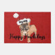 Funny Mops Hund glücklich heulend Rot Burlap festl Fußmatte