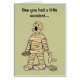 Diese humorvolle get well card hat vorne einen Cartoon-Mumie. Ihre Hand ist abgefallen, und sie weint. Auf der Titelseite der Grußkarte steht: "Sehen Sie, Sie hatten einen kleinen Unfall..." Sie können dies in der Vorlage ändern, wenn Sie gewollt haben. Im Inneren geht ein Mumie-Cartoon wie ein Ägypter. Klicken Sie auf Anpassen, um den Stil oder die Farbe des Schriftartes zu ändern oder der Nachricht mehr hinzuzufügen. Mehr werden gut und fühlen sich besser Grüße bei Feel Better Cards.