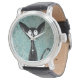 Katzen brauchen eigentlich keine Armbanduhren, aber vielleicht gefällt Ihnen diese Katze. Entfernen Sie den Vintag strukturierten blauen Damast-Hintergrund, wenn Sie möchten, und wählen Sie eine beliebige Hintergrundfarbe aus. Viele lustige und niedliche Katzengeschenke für Katzenliebhaber auf Paul Sticklands StrangeStore.