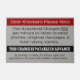 Türknopf Bitte beachten. Dieser Haushalt berechnet 50 US-Dollar pro Minute, um sich Verkaufsstellen, religiöse Botschaften und Geschichten zur Beschaffung von Finanzmitteln anzuhören. Diese Gebühr ist im Voraus zu zahlen. Durch anklopfen signalisieren Sie Ihr Einverständnis. Das ist ein großartiger Weg, um diese Pesky-Türklopfer auf schlaue Weise loszuwerden. Es wird auch Ihre Freunde und Familie zum Lachen bringen. Das macht ein großartiges Haus Erwärmung Geschenk!