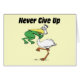Ein lustiges Design mit einer positiven Note. Gib niemals auf, dass ein Pelikan einen Frosch schluckt, der seine Hände um den Hals des Pelikans hat. Gutes Geschenk und Inspiration für Freunde und Familie.