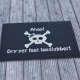 Niedliche Piratenmatte, Schwarzer Türmatte, benutzerdefinierter Text. Ein Kawaii Piratenschädel und Kreuzknochen "Piratenflagge" mit einem niedlichen gepunkteten Haarbogen auf schwarzem Hintergrund. Der Text ist anpassbar, wenn Sie meine "Ahoy!! Trockene Jahresfüße Landschmierstoffe". Geeignet für alle Piratentüren.
