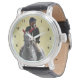 Uhr, Vintage Männeruhr mit schwarzem Lederarmband