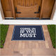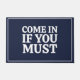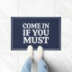 Ein lustiges, sarkastisches Spaß Zitat: "Komm rein, wenn du musst" in einem eleganten Marineblau. Wenn du für deinen Spaß bekannt bist, würde diese Türmatte eine ideale Wahl treffen.