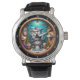 Uhr, Vintage Männeruhr mit schwarzem Lederarmband