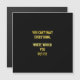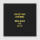 Gelber Text auf schwarzem Hintergrund hinterfragt humorvoll die Praktikabilität, alles zu haben. Es fordert den Leser auf, die Grenzen des Raumes und des Besitzes zu berücksichtigen.