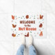 Dieses originelle Kunstwerk, das perfekt für Eichhörnchenliebhaber geeignet ist, verfügt über acht bezaubernde Eichhörnchen, hübsche handgezeichnete Blätter und ist mit dem Text "Welcome to the Nut House" (Willkommen im Nut House) versehen. Lassen Sie sich mit dieser süßen Matte verwöhnen, die Ihre Gäste beim Abspielen Ihrer Eichhörnchen-Liebe sicher zum Kitzeln bringt!