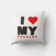 Hübsches Kissen mit 3D-Text "I Liebe My Husband". Schwarze Buchstaben, rotes Herz auf weißem Hintergrund. Du kannst den Text durch einen Freund oder eine Freundin ersetzen