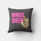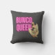 Super lustiges Kissen Design für Damen, die Liebe nach Bunco! Vintage Tänzerin im Kronen-Foto-Ausschnitt mit rosa Neon "Bunco Queen" Text auf kohlegrauem Hintergrund