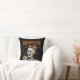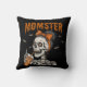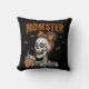 Vintage Halloween-Kunst auf einem Kissen, perfekt für die Saisondekoration oder Party-Gäste, mit einer Skelettmutter, die eine saisonale Freude und eine Nachricht von: "MOMSTER" trinkt.