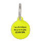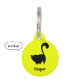 Erhöhen Sie die Identifikation Ihres Haustieres mit diesem lebendigen gelben Tier-ID-Tag. Eine humorvolle Illustration einer spielerischen schwarzen Katze zeigt ihre charmante Einstellung. Passen Sie die Vorderseite mit dem Namen Ihres Tieres an und fügen Sie zusätzliche Details auf der Rückseite hinzu. Stellen Sie sicher, dass Ihr wütender Begleiter bei Sicherheit und Stil auffällt.