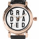 Für den neu abgeschlossenen Schüler. Ein Student Graduate Wristwatch sagt "graduiert" mit dem Wort in 3 Zeilen aufgeteilt und in einem Box-Rahmen enthalten.