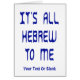 Text, der "IT'S All HEBREW TO ME" in einem hebräischen Imitat liest. Eine Parodie des Sprichworts "Es ist alles Griechisch für mich" verwendet, wenn etwas unverständlich ist.