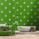 Fußball-Pitch, Fußball-Feld-Tapete. Grüne gestreifte Tapete gemustert mit Fußbällen und Fußball-Spielmarkierungen. Ideal für Fußballspieler und Fußballvereine.