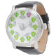 Fußball-Uhr - mit grünem und gelbem Streifen Armbanduhr