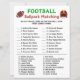 ⭐️ Was es ist: Football Ballpark Matching Game ist ein Party-Spiel. Vergleiche den Ballpark mit der Fußballmannschaft. Das Richtigste gewinnt! Antwort des Football Ballpark Matching Game: 1. G, 2. 3. N, 4. K, 5. ABl. F, 7. M, 8. L, 9. R, 10. E, 11. Frage 12. H, 13. C, 14. A, 15. P, 16. B, 17. D, 18. J.