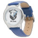 Kinderuhr aus Edelstahl mit blauem Lederarmband