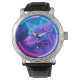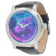 Futuristisches Neon Wolf-Gesicht in geometrischer Armbanduhr