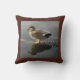 Ich Liebe die weichen Taupe und grauen Flügel von Gadwell ziehen Enten, zusammen mit ihren bordeauxfarbenen Kopffedern. Dieses quadratische Kissen zeigt ein Bild einer Gadwell-Drake und seine Reflexion auf braunem Hintergrund auf beiden Seiten.