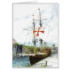 Eines der hochgewachsenen Schiffe von Chalestown, das als Galleon im alten Stil für eine Filmproduktion "gekleidet" wurde. Von der ursprünglichen Wasserfarbe von Christine Hudson.