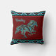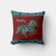 Personalisieren Sie dieses einzigartige "Eine von einer Art" Pferdekissen. Es verfügt über eine Galopp-Pferd-Silhouette in Türkis, Schwarz & Gold auf einem Maroon-Hintergrund...Umgeben von einem Südwesttürkis-, Weiß- und Rostband. Es ist ein Original Grafik Design erstellt von Artist Kerry Miller. Viel Spaß!