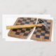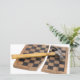 Ein Schachbrett aus Holz zeigt das Spiel in zwei