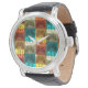 Uhr, Vintage Männeruhr mit schwarzem Lederarmband
