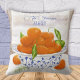 Dieses nostalgische Bauernhaus-Kopfkissen ist zweiseitig. Auf der einen Seite sind Gänse aus der Landwirtschaft in einer Schneeflocke gefangen. Auf der anderen Seite stehen lebendige Winterorangen auf einem Tisch. Personalisieren Sie Ihr Kissen mit Ihrem eigenen Text auf beiden Seiten. Die Farben sind hellblau, der Schriftart ist in Orange und Blau gehalten, Beige und Braun sind natürlich.