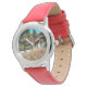 Uhr, Kinderuhr aus Edelstahl mit rosa Lederarmband